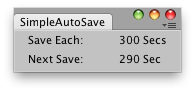public class SimpleAutoSave : EditorWindow { public float saveTime = 300; public float nextSave = 0; [MenuItem("Example/Simple autoSave")] static void Init() { SimpleAutoSave window = (SimpleAutoSave)EditorWindow.GetWindowWithRect(typeof(SimpleAutoSave), new Rect(0, 0, 200, 50)); window.Show(); }