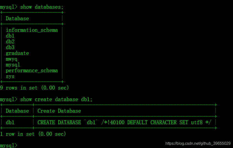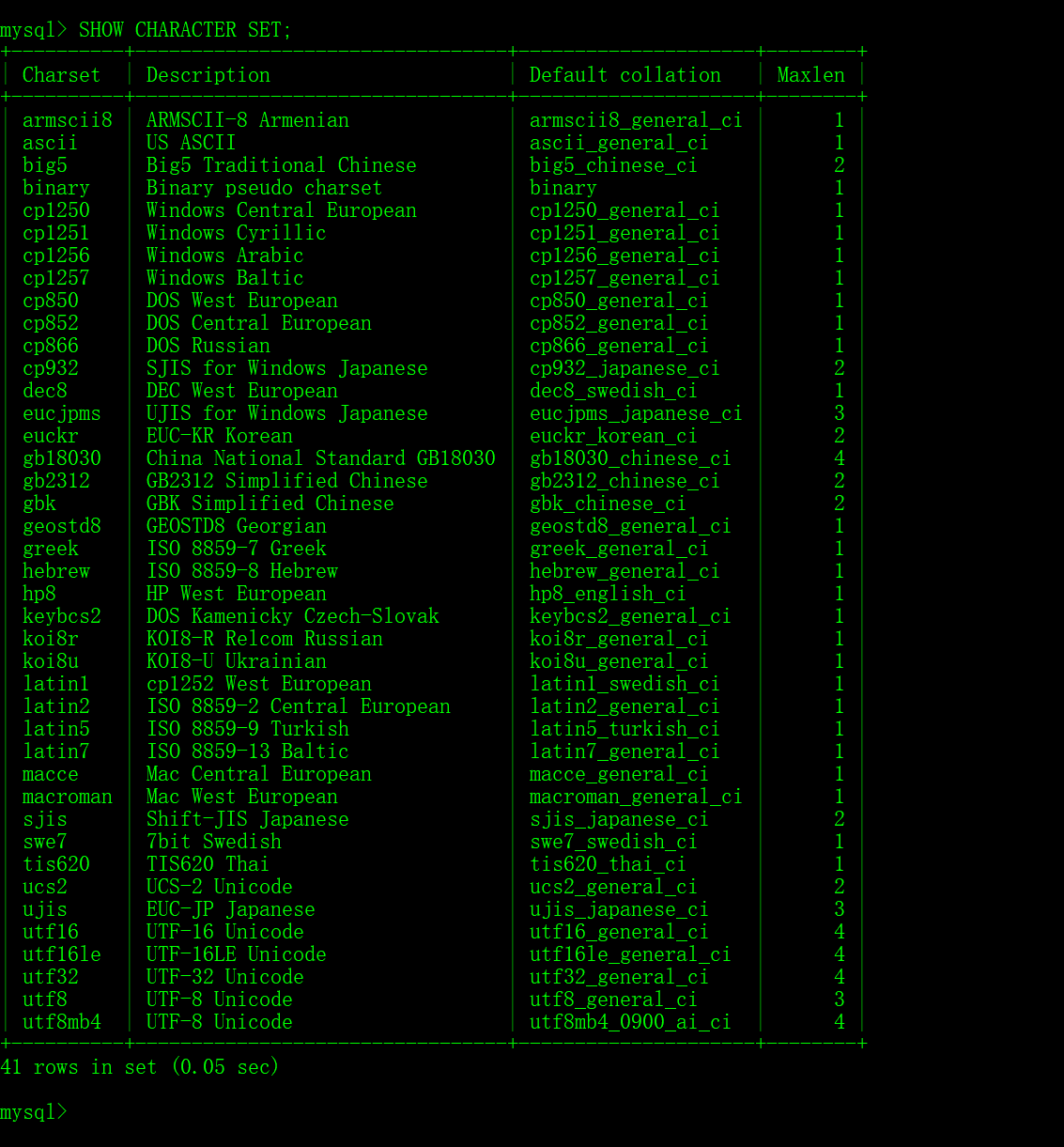 # 服务端使用的字符集默认为utf8
