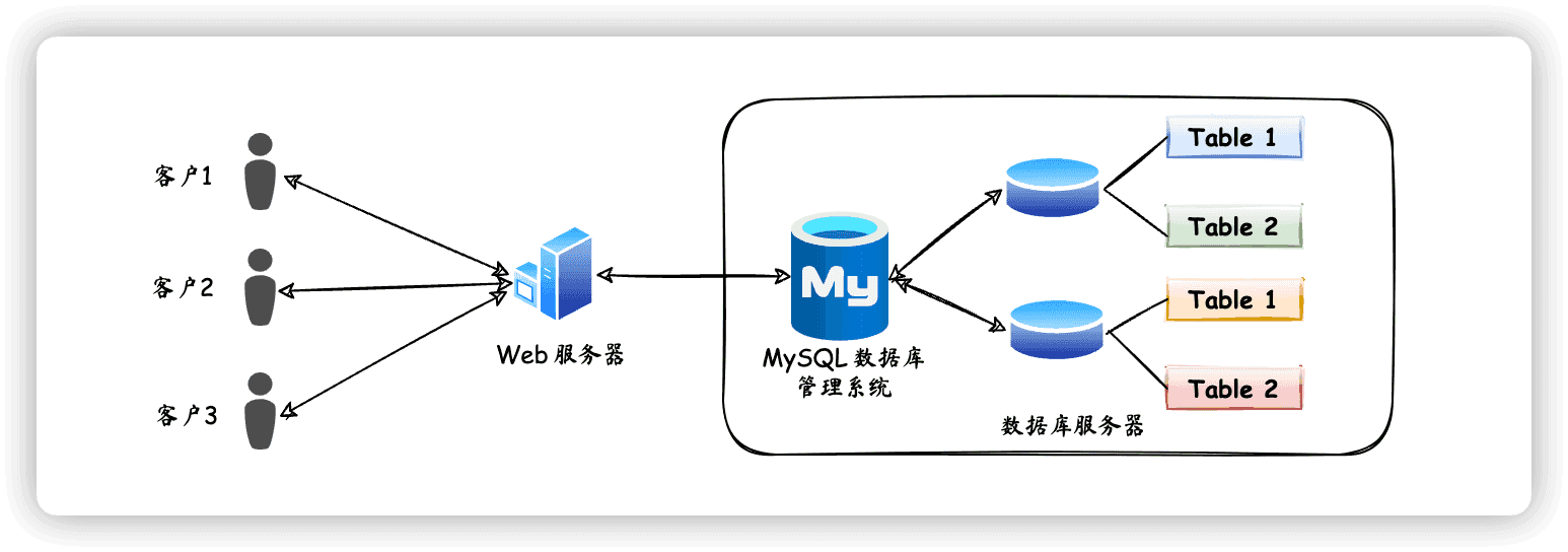 一般而言,数据库管理系统可以管理多个数据库。我们一般会针对一个应用就创建一个对应的数据库,而为了保存应用中的数据,就会在数据库中创建多个表,用于保存对应实体用户的数据。