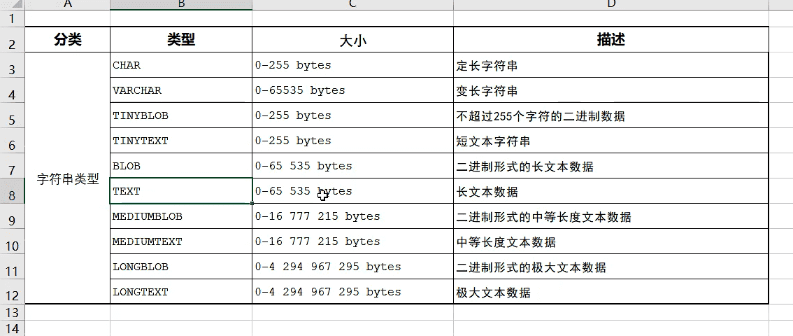 | 一个列 | 类中的一个属性 |