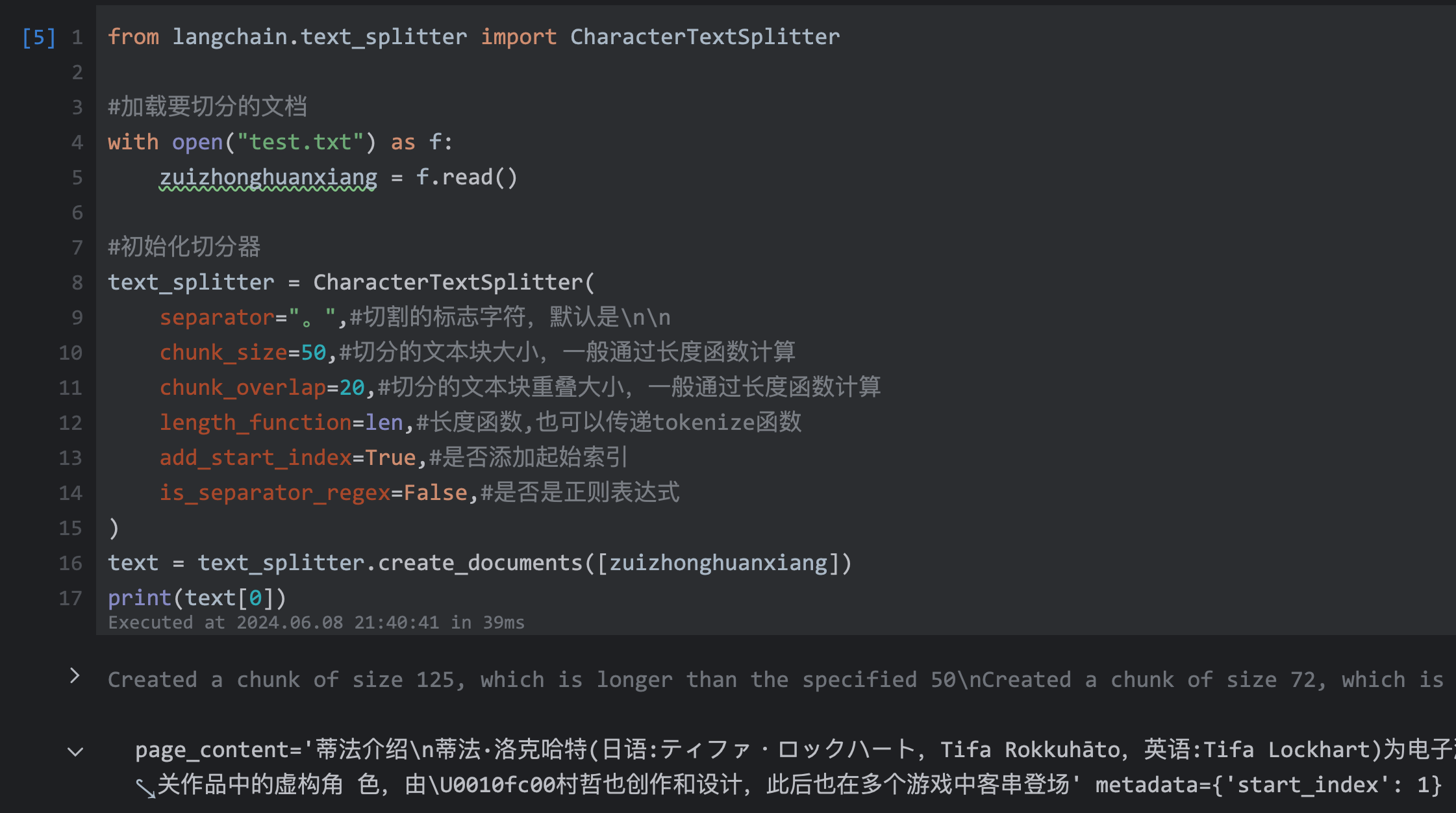 | 40 | +#加载要切分的文档 |
