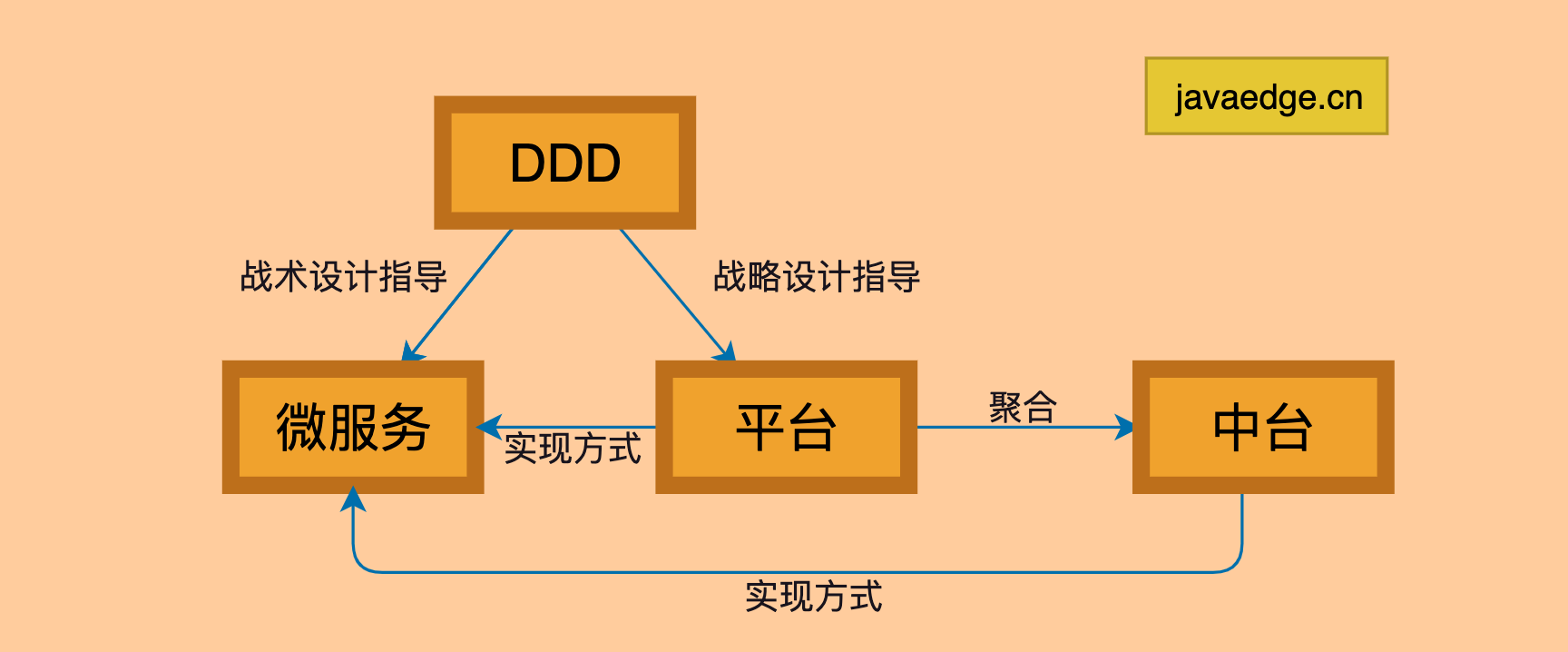 | 26 | +平台和中台在业务架构更多偏向于业务模型,形成平台和中台的过程,也是业务领域不断细分的过程。在这阶段要将通用能力不断聚合、建立领域模型,这过程和DDD战略设计就很匹配。 |
