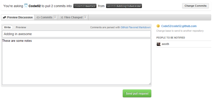 Neat so far, right? It gets better. The pull request will notify the project maintainers, and present them with an awesome magical button.