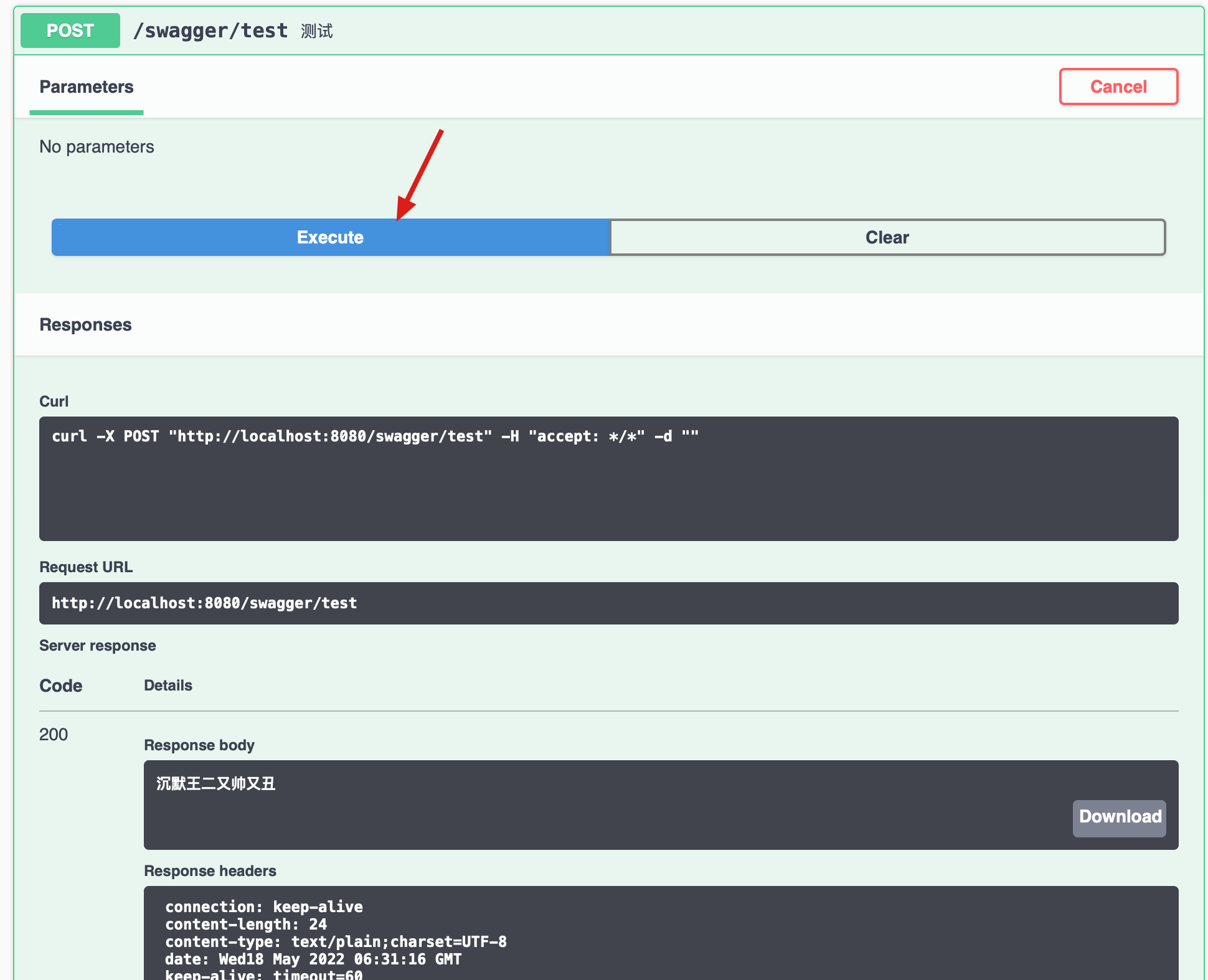 | 277 | +再点「execute」才能发送请求和查看响应结果。 |
