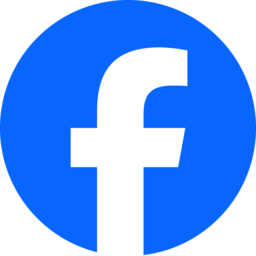 Nossa expressão principal do logotipo está no Facebook azul com o "f" branco.